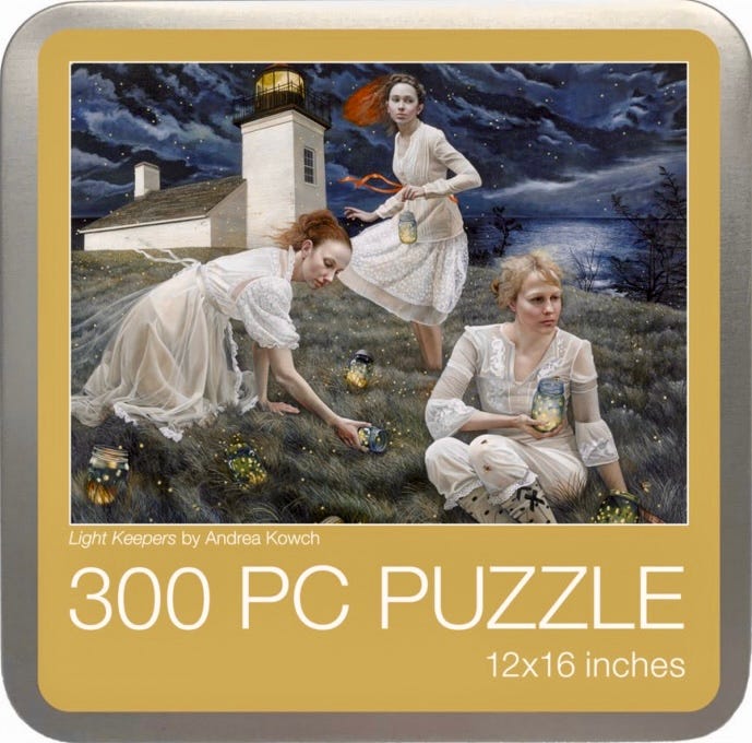 In case you’re feeling that boredom-which-is-really-just-a-chance-for-rest, how about a jigsaw puzzle? There is renewed interest in working jigsaw puzzles for mindfulness. I occasionally work them and enjoy them, especially when there’s a group of folks on hand to help. Many artists now allow their works to be sold as jigsaw puzzles. Here are two I really like: